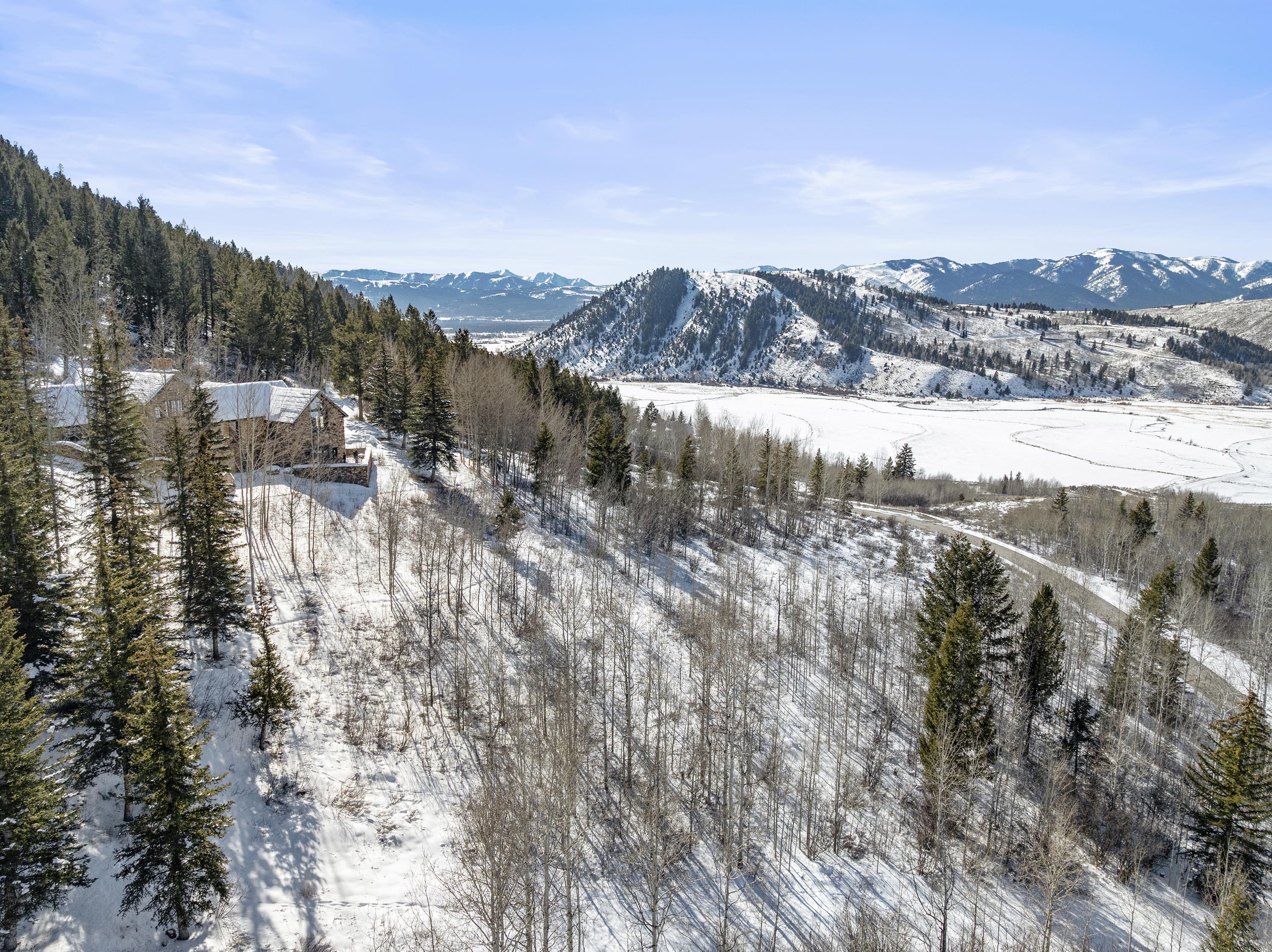 Adjacent 1100 W. Pine Siskin Road, also 40± acres, provides privacy, views, and close proximity to the town of Jackson, world-class Jackson Hole Mountain Resort, and National Parks. The property includes an existing residence and four-car garage. The residence is unfinished, offering the opportunity for a buyer to complete, renovate, or redevelop to their own taste. The site’s unobstructed, elevated vantage point frames the Tetons in dramatic fashion, offering a buyer the freedom to design and construct a bespoke estate of lasting architectural significance.